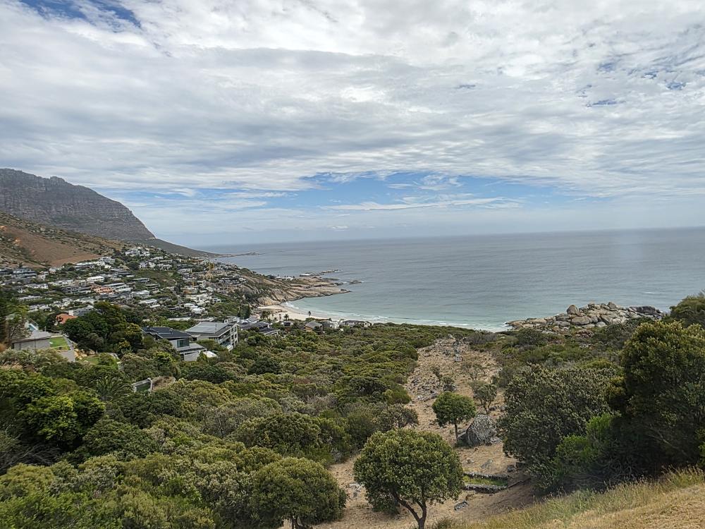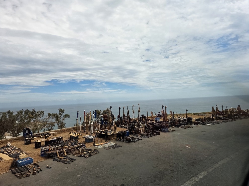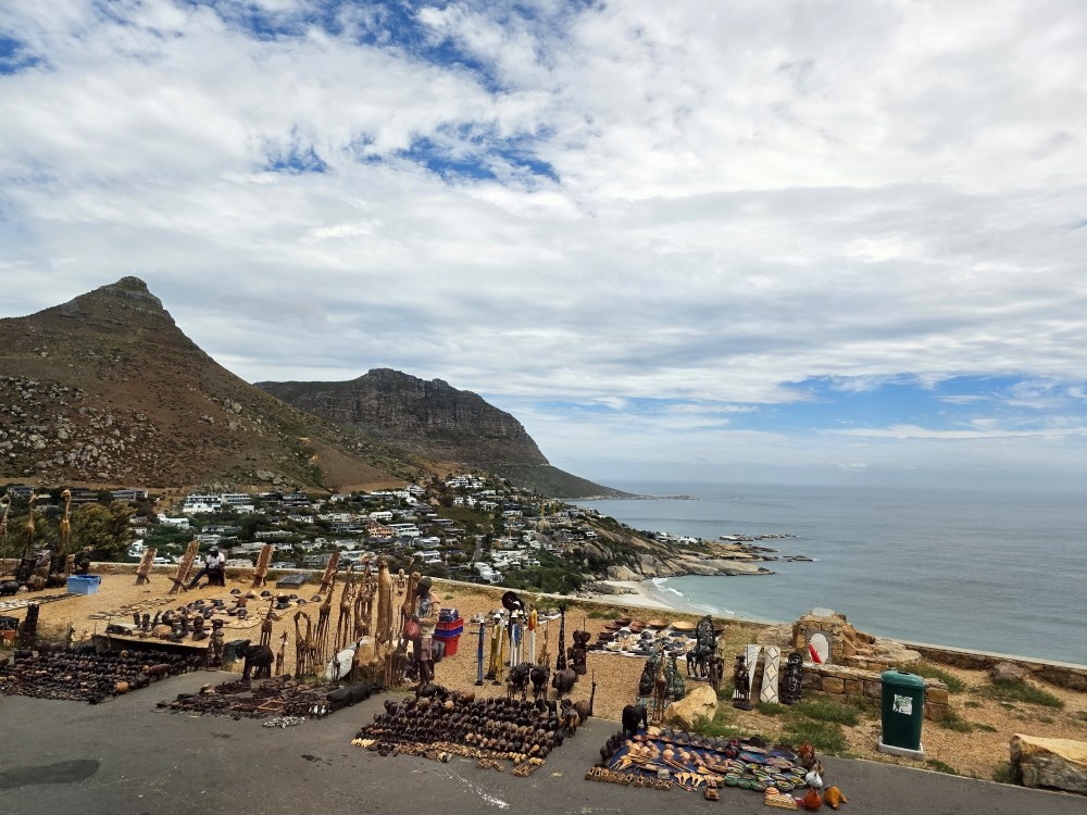Then it is back up the coast, more stunning photos of the coast – including the art vendors set up on the side of the road – more 7 Apostle shots, more Camp’s Bay, and today, a hang glider landing just as we passed.