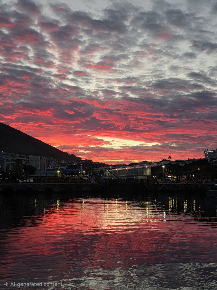 On the way, though, the sunset! It was so cloudy, we had been commenting that we were very glad we didn’t go on the HoHo sunset ride to Signal Hill as it would have been a waste. Au contraire Pierre! My God – the colors of the sunset reflected in the clouds were stunning. Simply beautiful. We’ve rarely seen anything like it! Gorgeous.