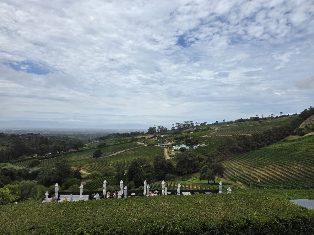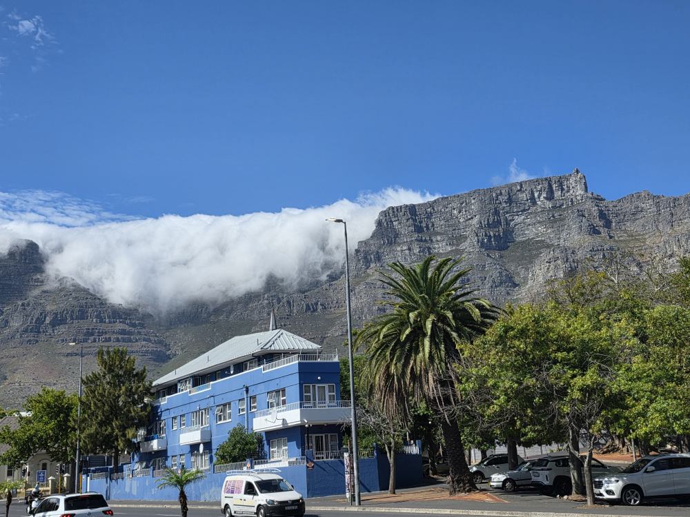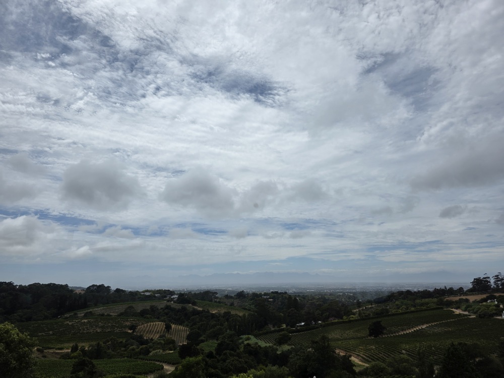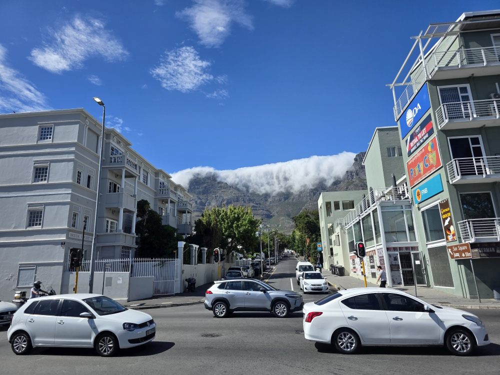 And as it turns out, we miss Monique too, as she is crazy busy at that point in time and we have to go, meeting Rafa out on the pier and saying farewell, promising we will see each other again soon somewhere in the world. Also, as it turns out, there is no chaos on the pier at that time in the morning. We have our luggage, are on the shuttle and out of the pier in no time. So much so, we actually arrive at the cruise terminal at quarter past 8. Oh, we have a long wait! And wait. And wait. We tried to contact our driver, but he didn’t respond. We know we can’t check into the hotel, but we do want get over there as soon as we can and the go grab a coffee or something before taking the 10am HoHo to Constantia. As the wait grows longer, we end up canceling the pre-paid driver in lieu of an Uber, which comes right away and whisks us over to the hotel for a grand total of $4.45 USD. I mean, you can’t beat that. At some point the other driver called and asked what our flight details were because he didn’t have them and he needed them to pick us up at the airport. What? No! We aren’t there – we just told him we had canceled and moved on. At least we got some amazing photos of the clouds blanketing Table Mountain and Lions Head while we waited and stewed!