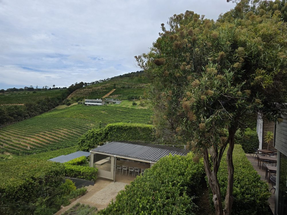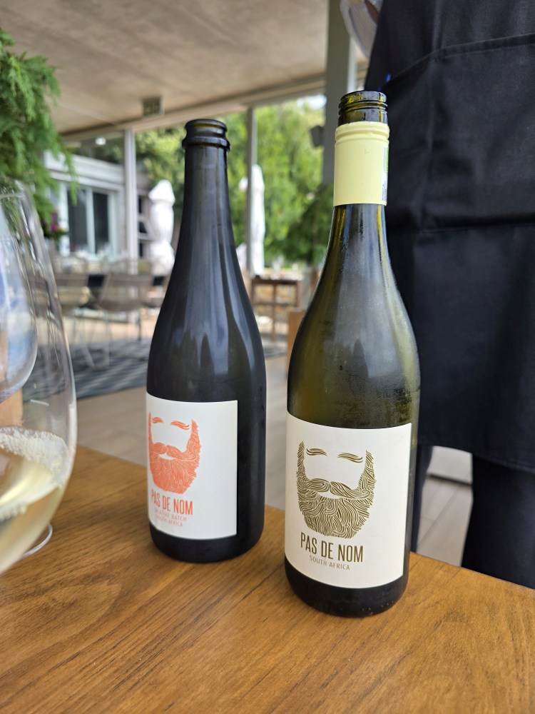 We ordered the meat and cheese platter – massive as it was before – and contentedly snack on that while we are tasting our great wines. Josie give us the story of the Goat farm, the fire that burnt the farm down, the goats escaping to the mountains and the current owners buying the burnt out shell of the farm to convert it into a vineyard and winery. Beau Constantia is the newest, the highest (vines are planted on slopes 350 meters high) and the most creative winery. Great slogan!