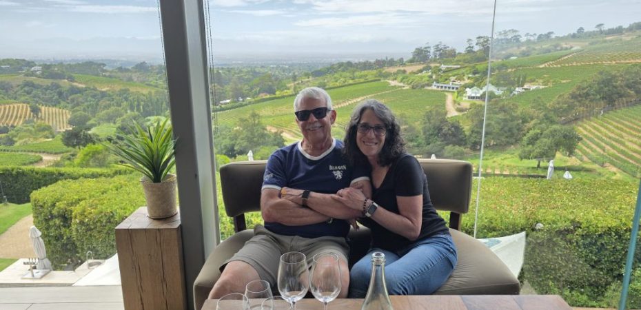 Lunch and tasting over, we hit the Loo with a View, then wander about the property taking various selfies (the one with Ed and the original Winemaker’s beard is the best) and photos of grapes and vistas, then head for the HoHo bus and back to Cape Town.